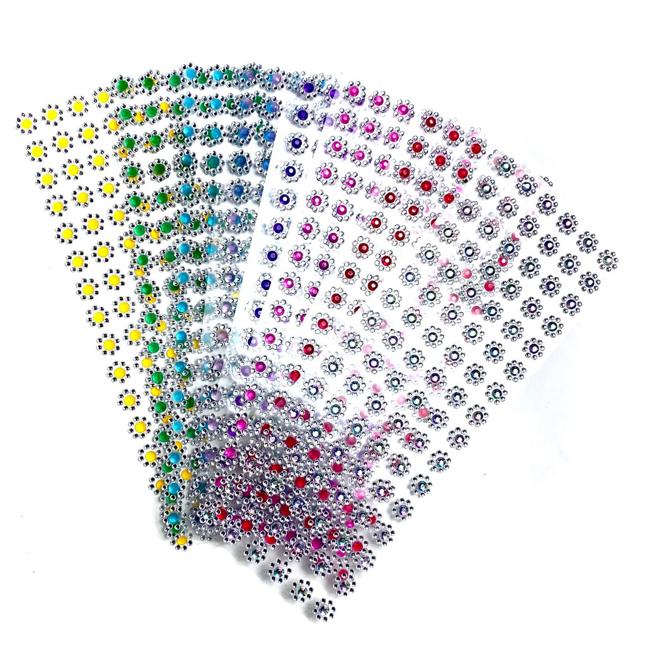 Cartela de Adesivos Flor Strass (1,5cm) – 96 unidades