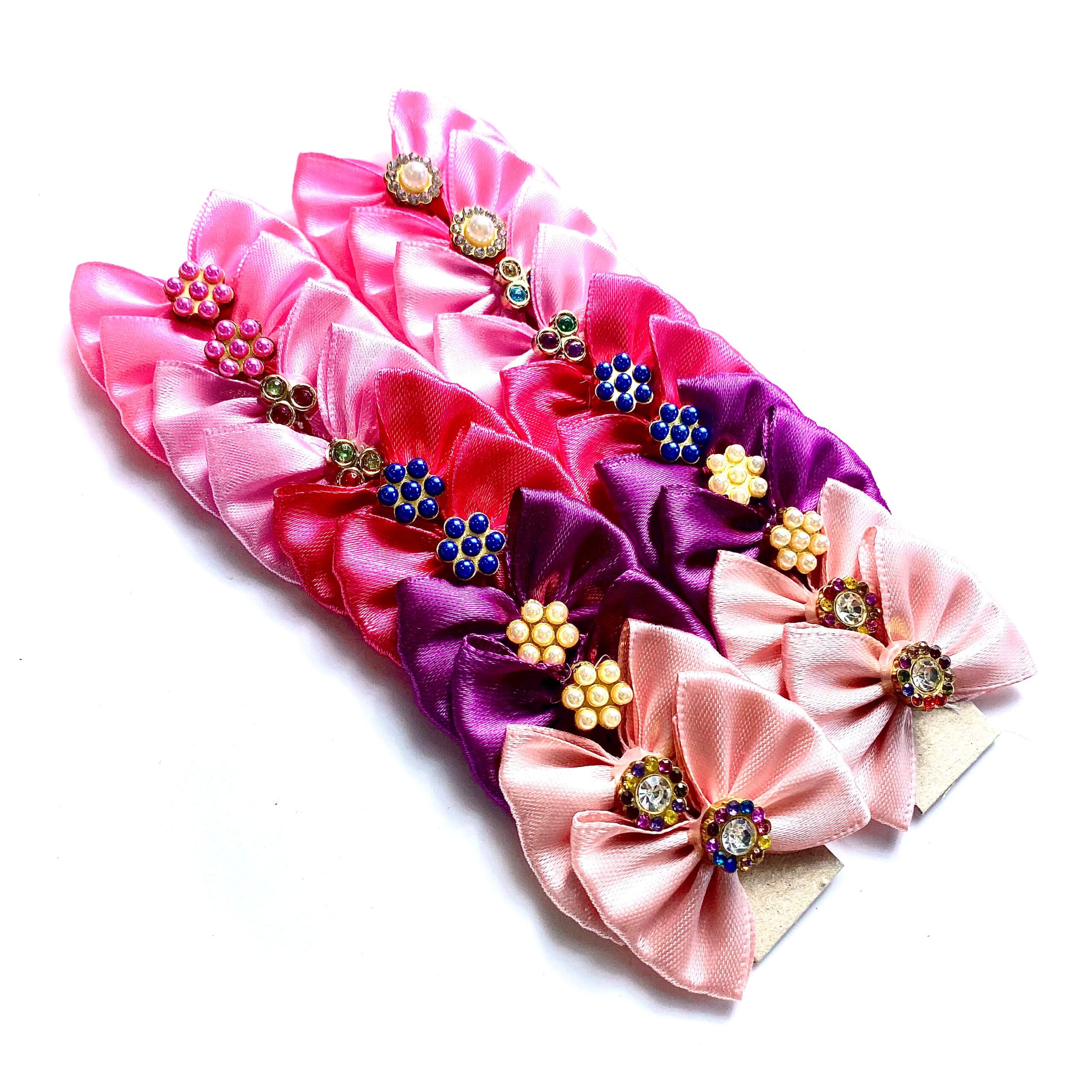 Laços Médios Cetim Aplique Flor Pétalas Pérola – 20 unidades