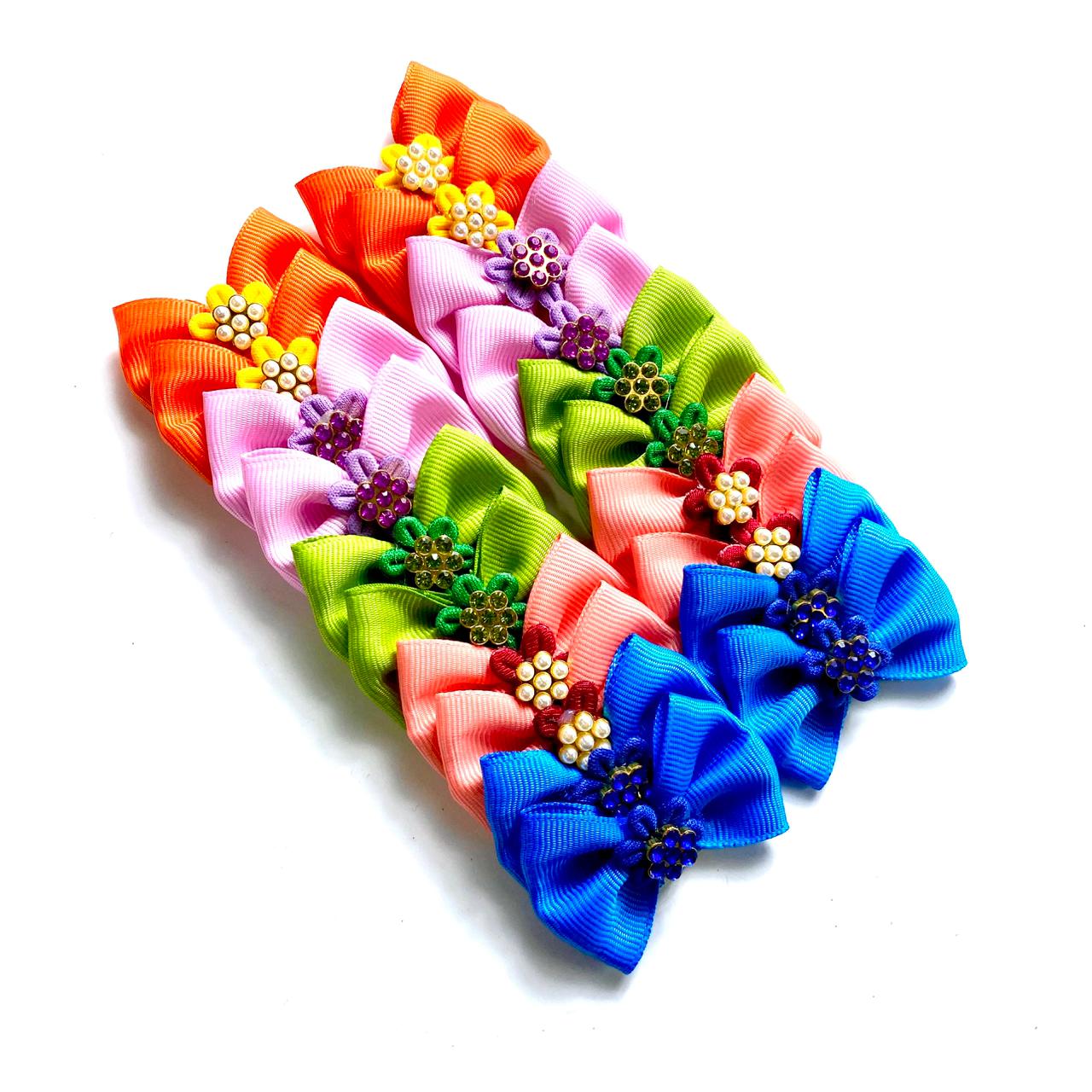 Laços Médios Colorido Aplique Flor Strass – 20 unidades