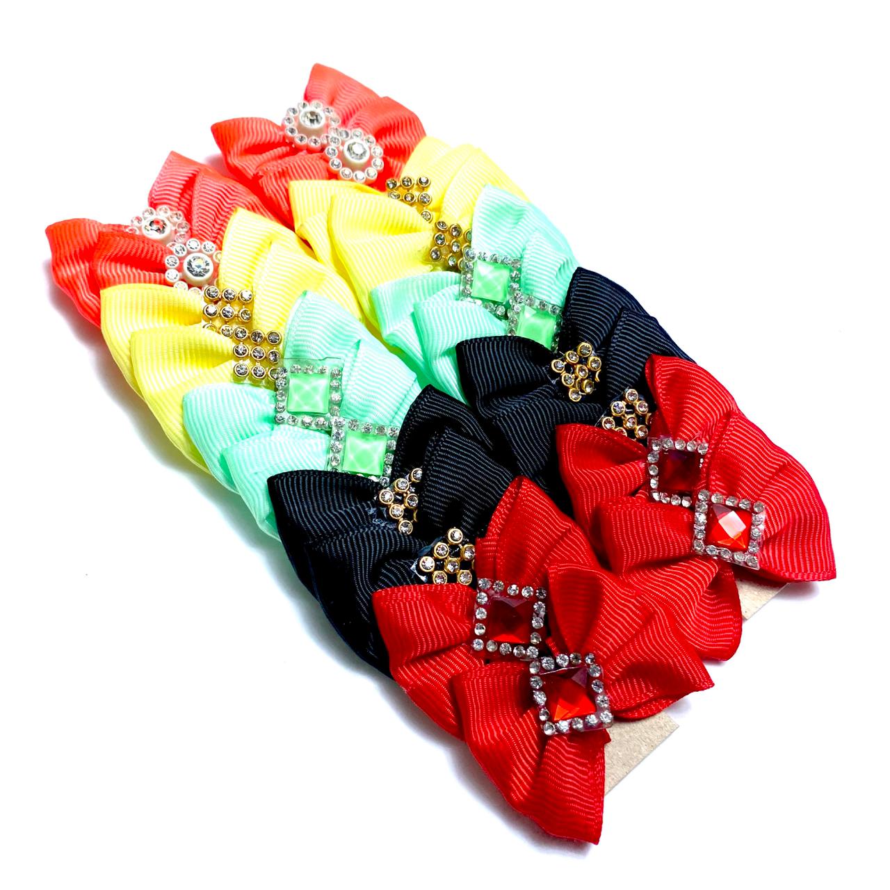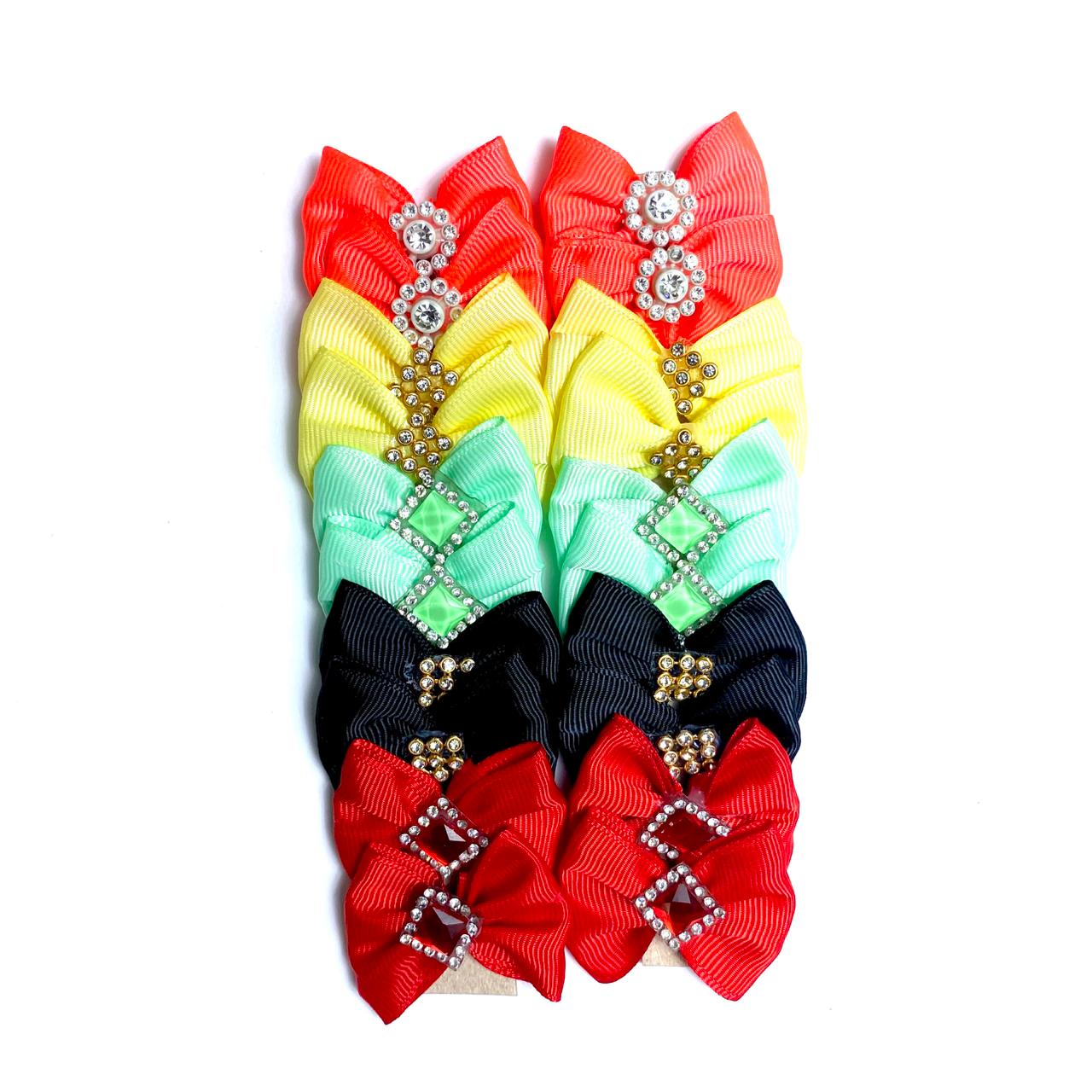 Laços Médios Coloridos Aplique Strass Sortidos – 20 unidades