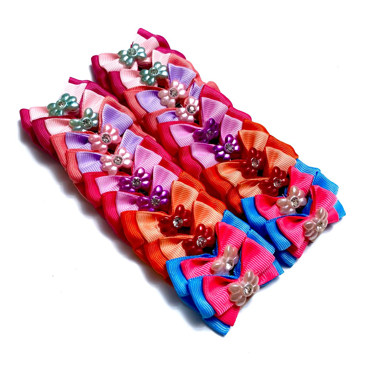 Laços Médios Duplo Aplique Flor Seis Pétalas – 20 unidades