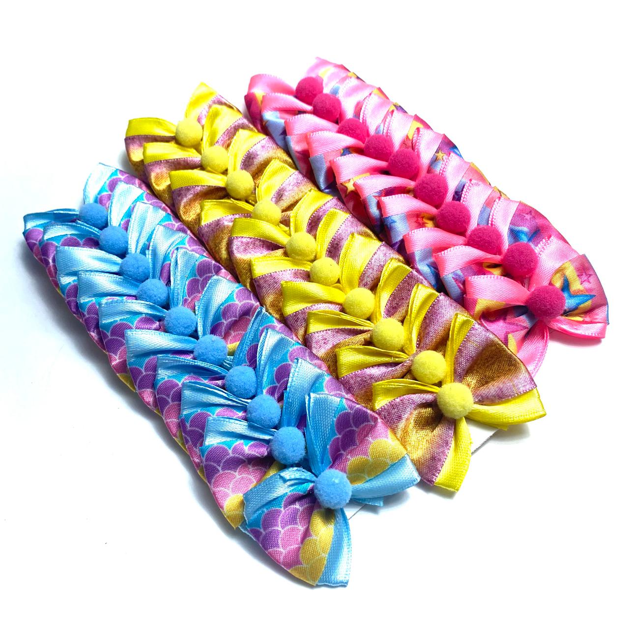 Laços Médios Estampados Aplique Pompom – 30 unidades