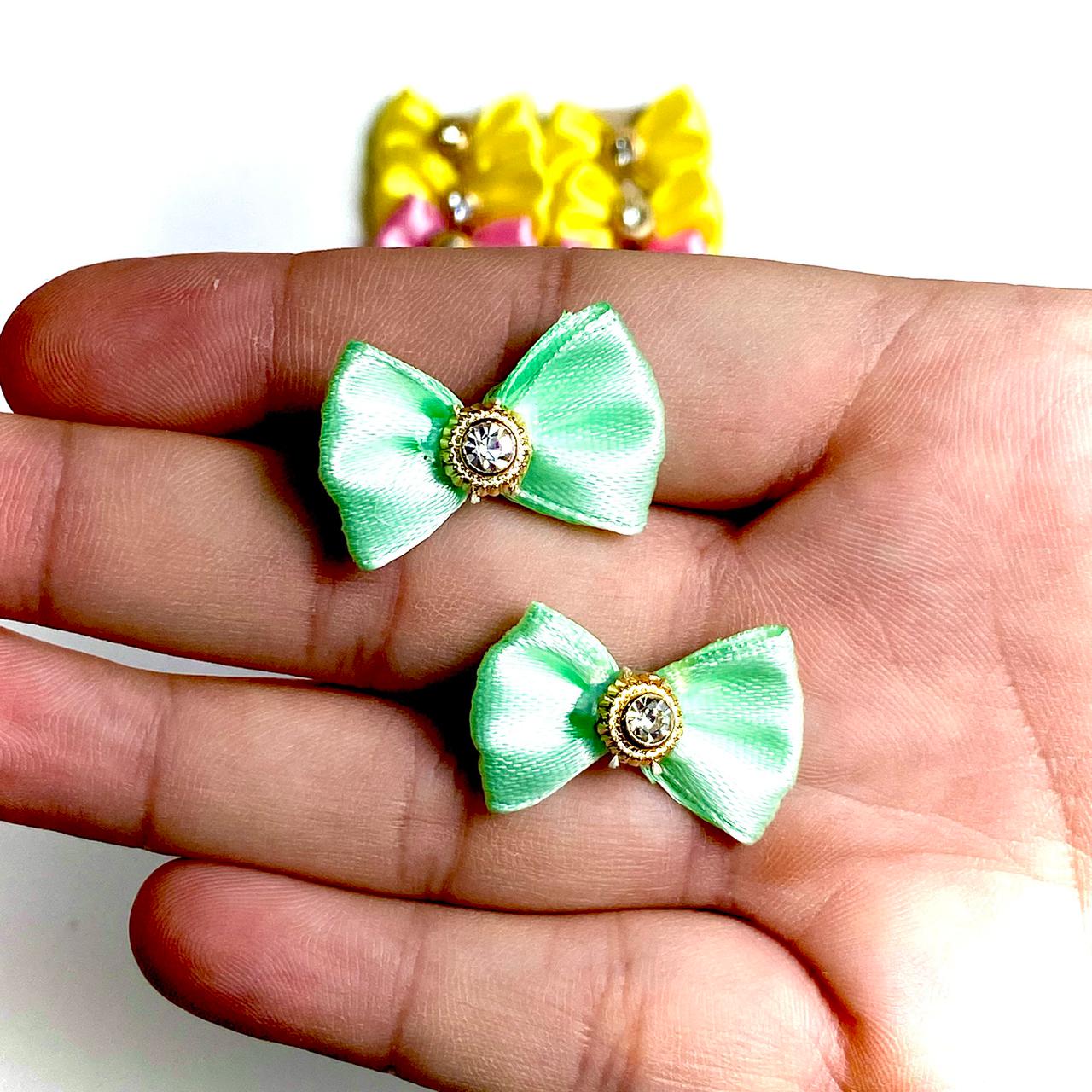 Laços Pequenos Cetim Aplique Pedra Strass - 20 unidades